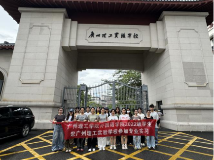随后,在学校教师的引导下,实习学子依次参观了教学楼、标准化运动场、多媒体教室、语音实验室等教学及活动场所,直观了解校园布局与教学硬件设施,为后续开展实习工作熟悉环境。当日下午,全体实习师生与广州理工实验学校接待人员在校园大门前合影留念,标志着本次实习之旅的正式开启。