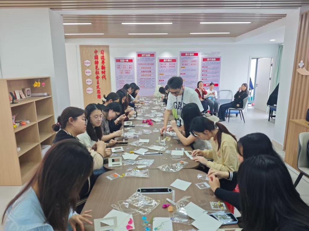 活动伊始,同学们在校园内细心收集被春风拂落的各色花瓣与形态各异的落叶,每一片都承载着阳光的温度与校园的专属记忆。现场还贴心准备了干燥花材与永生花作为补充,即便自然落英有限,同学们的创作热情也丝毫未减。在轻松愉悦的氛围中,大家发挥巧思,将花材精心搭配、悉心摆放,封印于透明书签之内,再提笔写下外语寄语与春日祝福——或是一句浪漫的法语诗句,或是一段励志的英文格言。一张张独一无二的书签相继诞生,或清新淡雅,或斑斓绚丽。