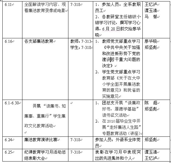 外语系开展2010年纪律教育学习月活动方案