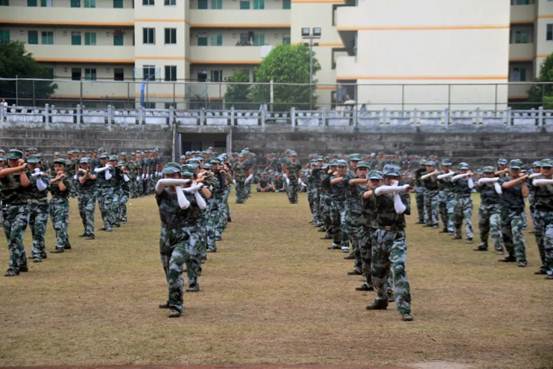 一幅幅精彩的照片,透露出新生们的认真与自信。通过教官的严格训练,短短十四天的军训,新生们便将匕首操、军体拳、反恐队等预定训练科目表演地淋漓尽致。新生们一致的口令、嘹亮的声音、整齐的步伐、矫健的身姿赢得了在场众人热烈的掌声。