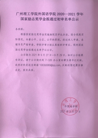 williamhill英国官网2020-2021学年国家励志奖学金拟通过初审名单公示