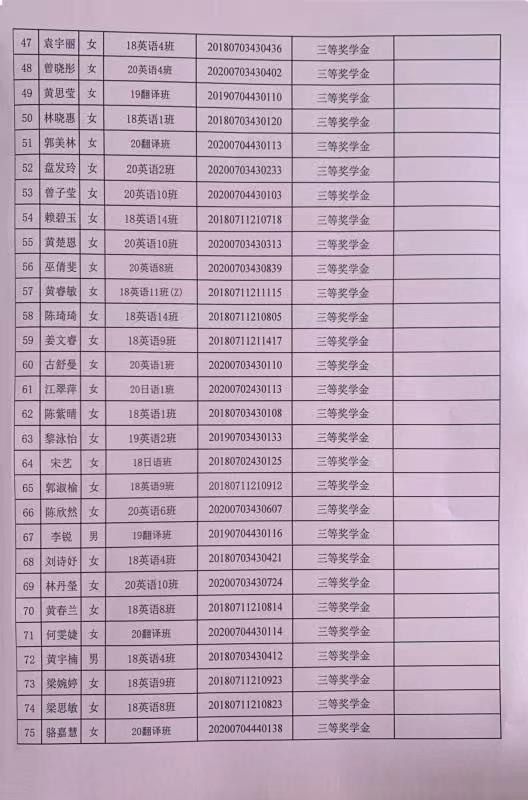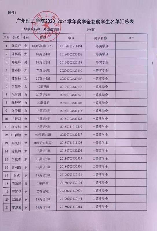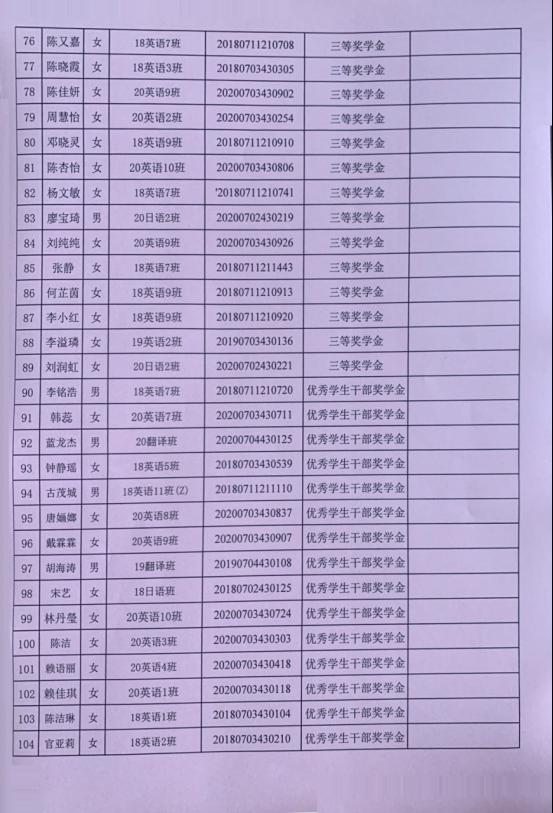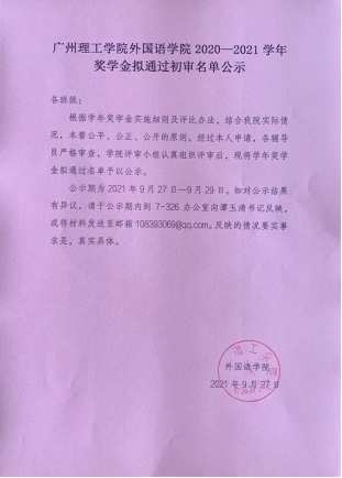 williamhill英国官网2020-2021学年奖学金拟通过初审名单公示