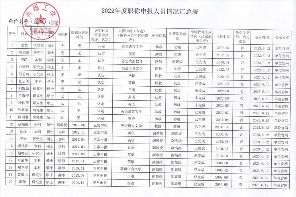 williamhill英国官网关于赵艳梅等20位老师申请晋升职称的公示