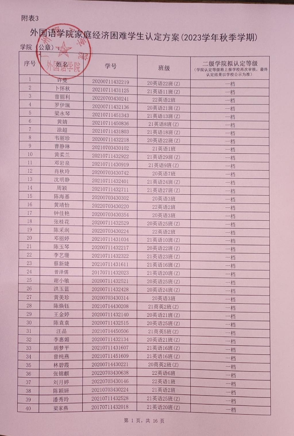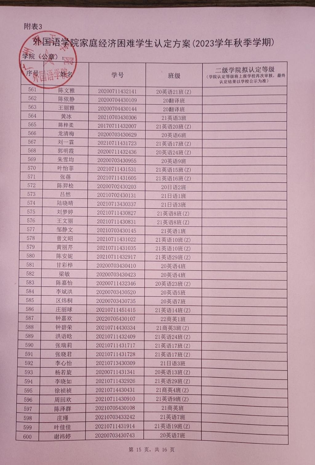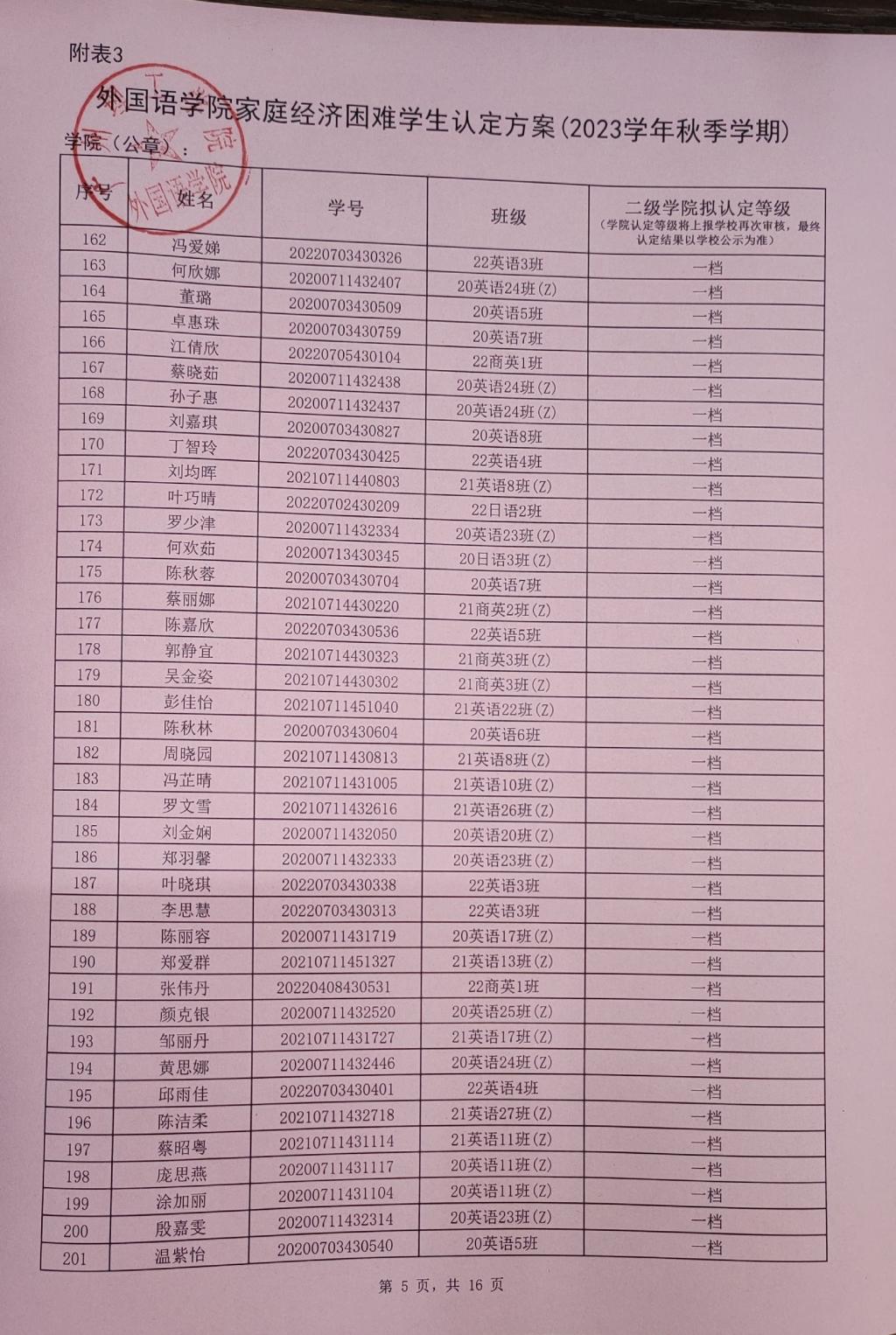 此名单中的贫困等级仅是学院初审拟定结果,最终贫困等级结果以学校审核上报全国学生资助信息系统后由系统判定的贫困等级为准。