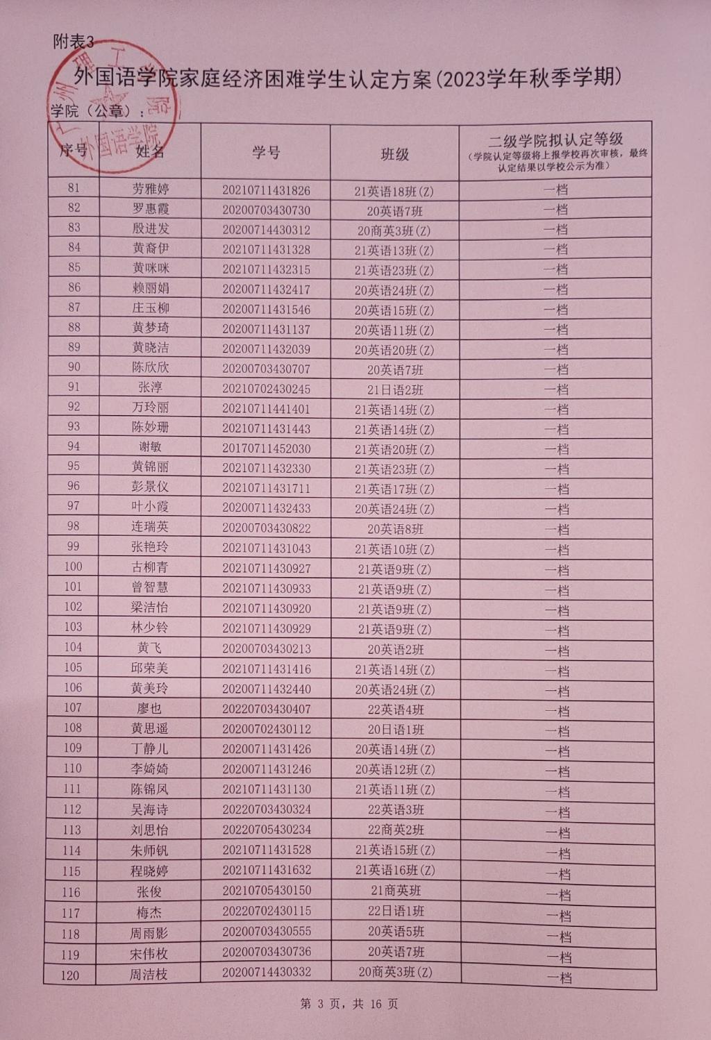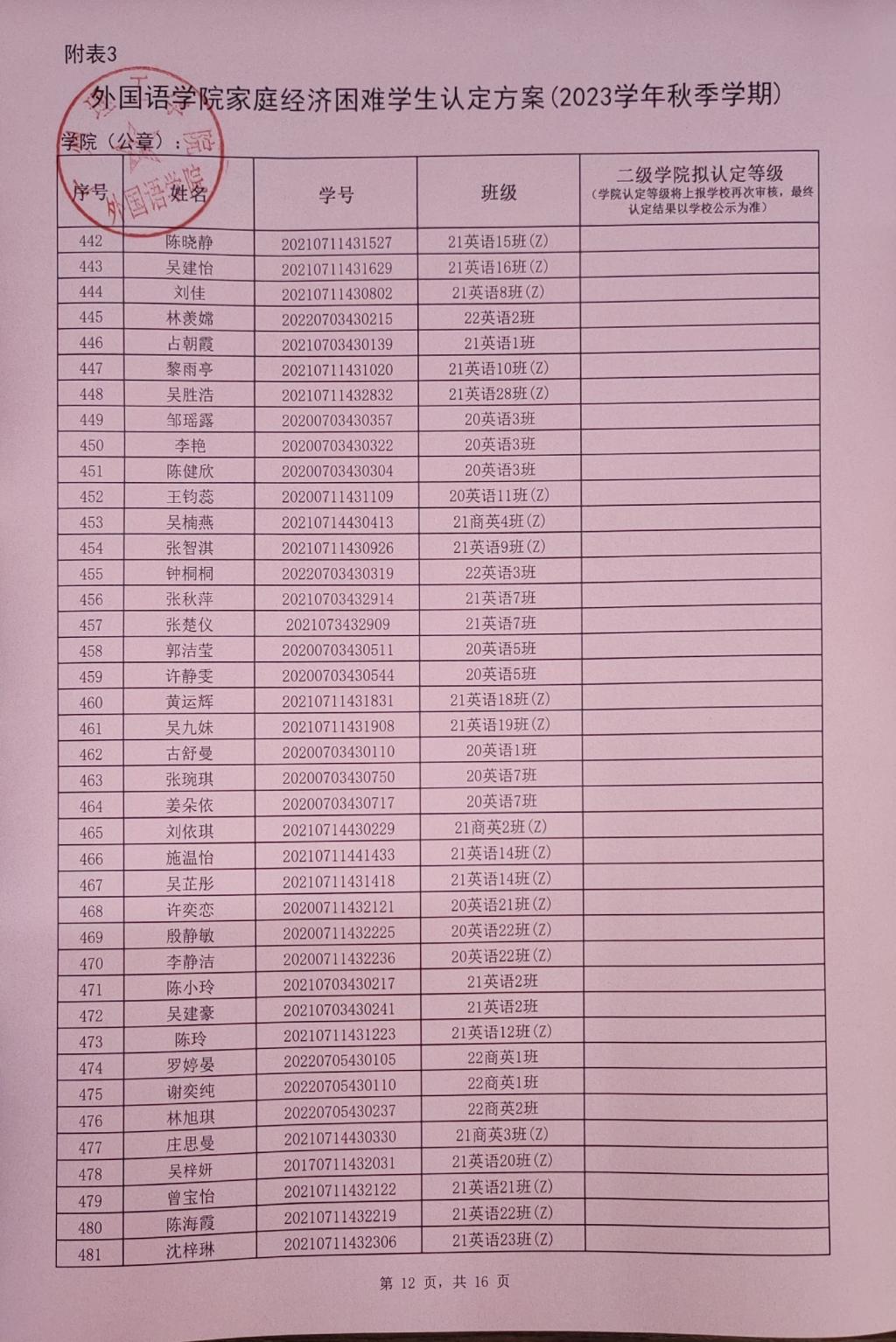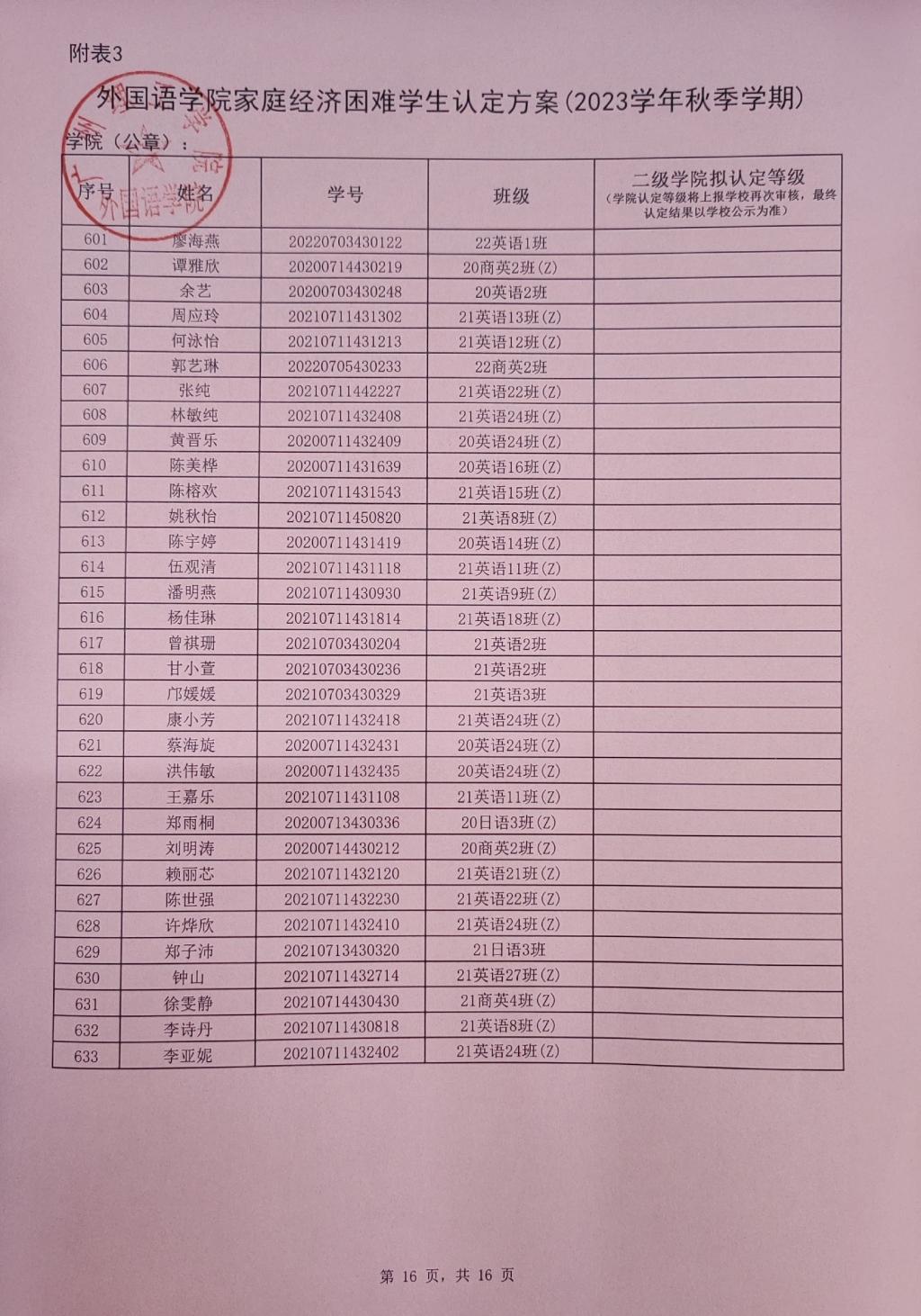 此名单中的贫困等级仅是学院初审拟定结果,最终贫困等级结果以学校审核上报全国学生资助信息系统后由系统判定的贫困等级为准。