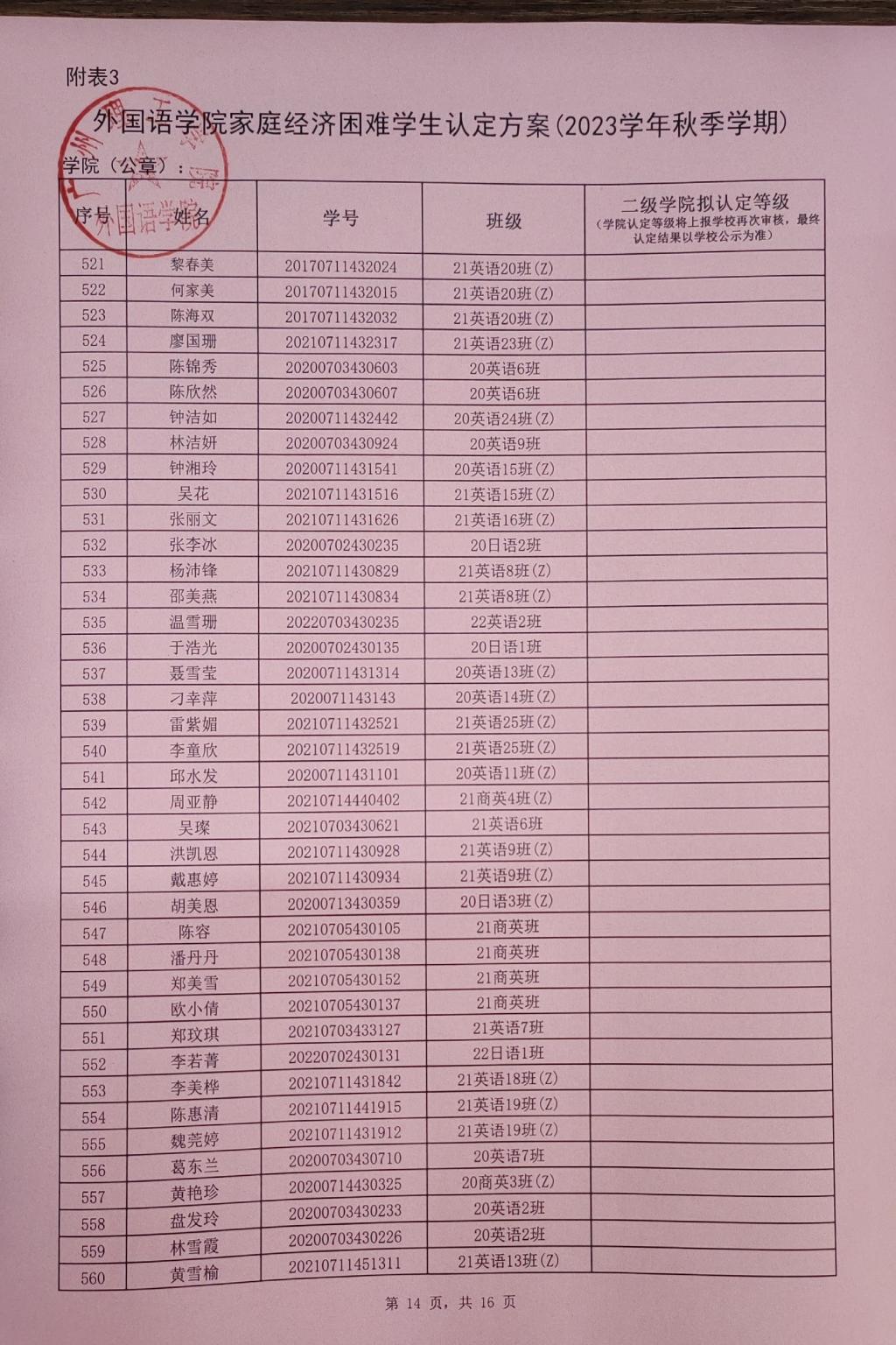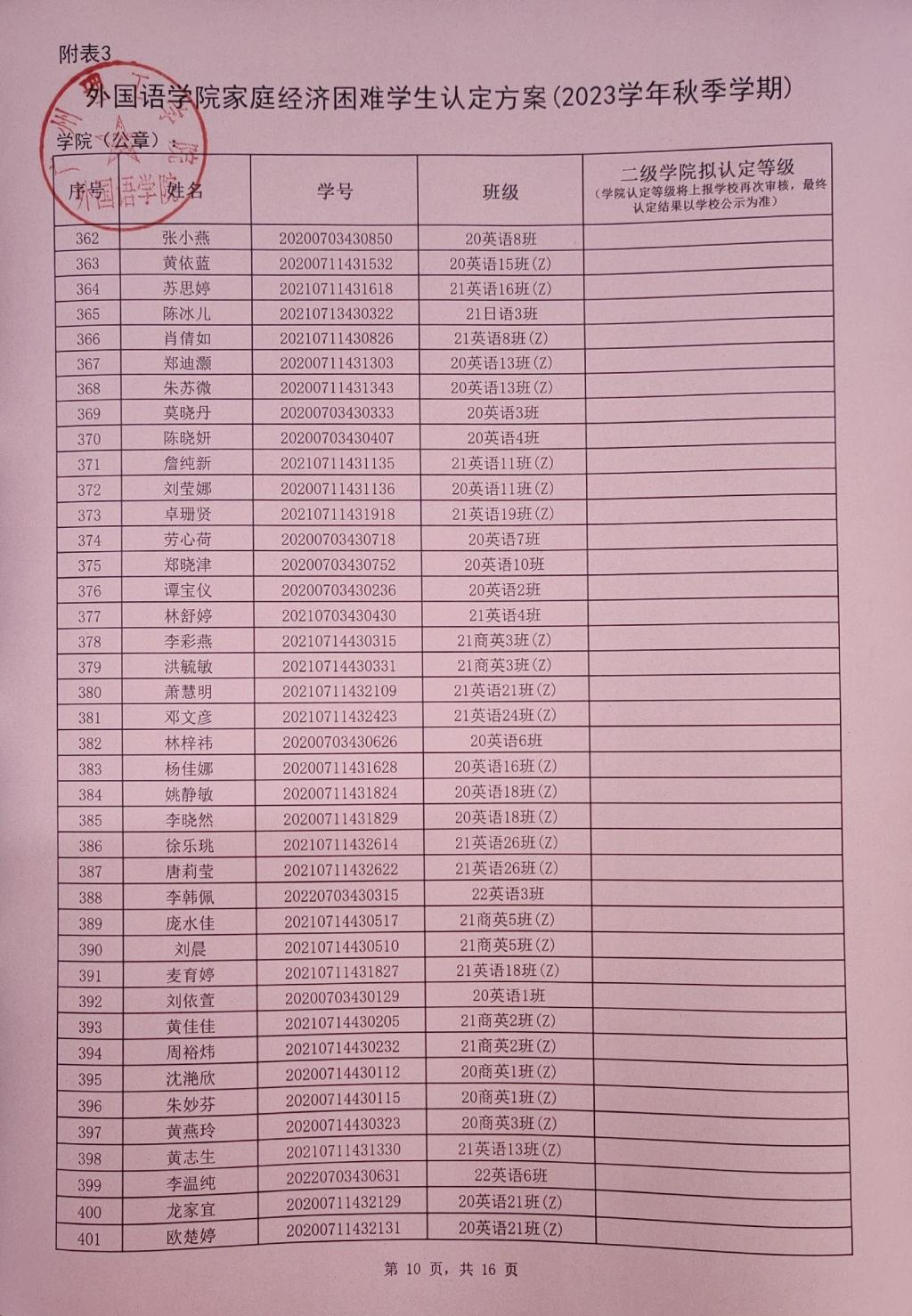 williamhill英国官网2023-2024学年家庭经济困难学生认定初审结果公示