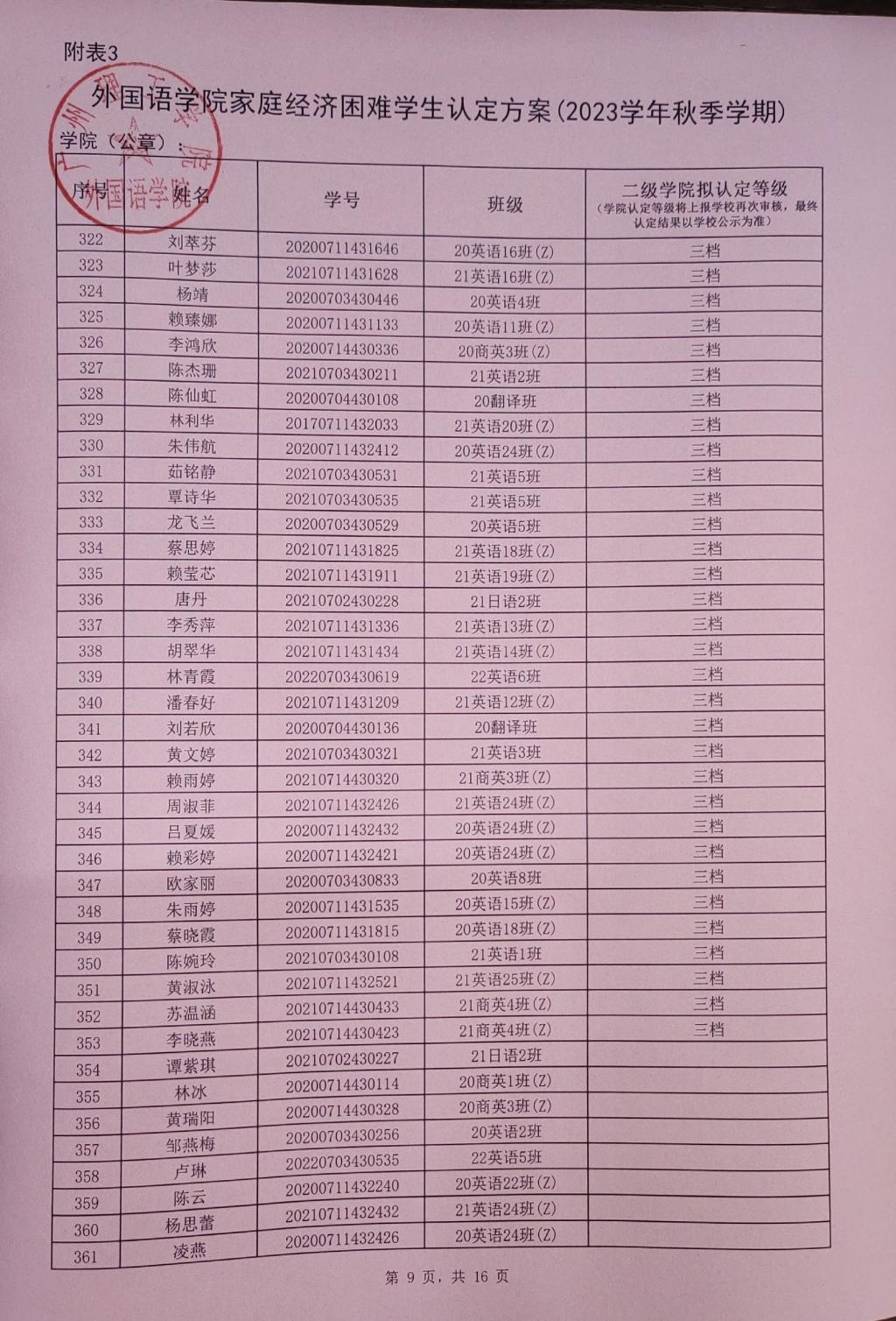 为全面了解和掌握学校家庭经济困难学生的基本情况,公平、公正、合理地分配资助资源,切实保证各项资助政策和措施真正落实到家庭经济困难学生身上,根据上级相关文件精神,经学生本人申请以及班级、学院评审小组评定,现将我院2023-2024学年家庭经济困难学生认定初审结果进行公示,公示时间为2023年9月25日至2023年9月29日。
