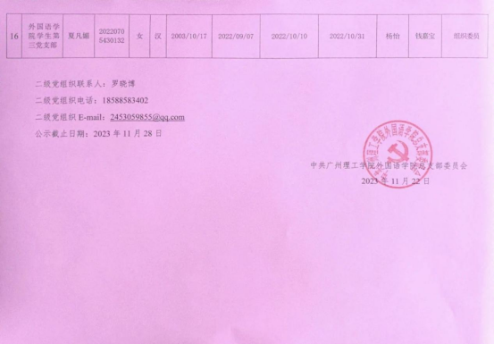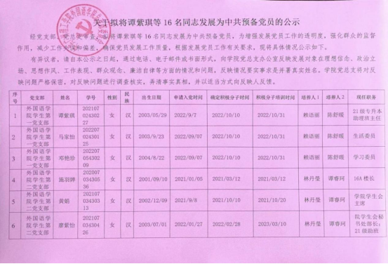 williamhill英国官网关于拟将谭紫琪等16名同志发展为中共预备党员的公示