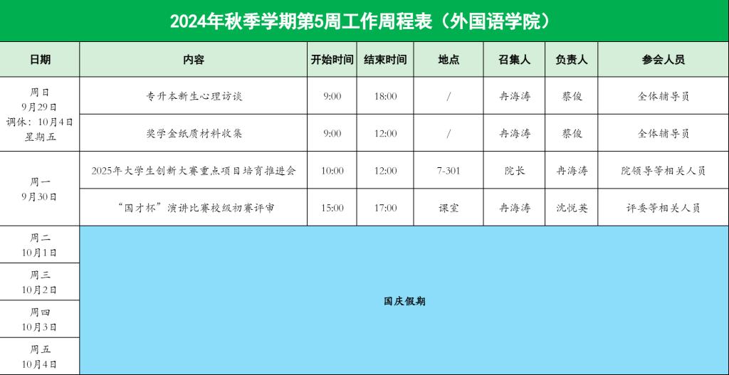 williamhill英国官网2024年秋季学期第5周工作周程表
