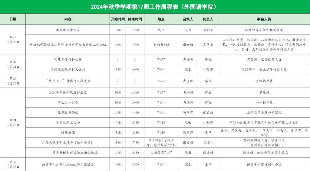 williamhill英国官网2024年秋季学期第17周工作周程表