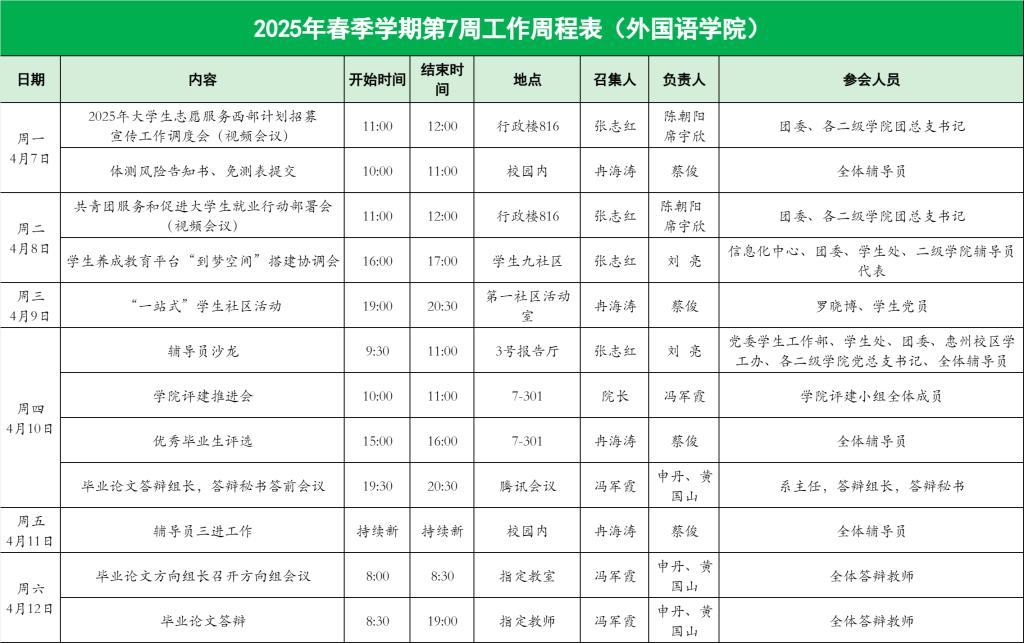 williamhill英国官网2025年春季学期第7周工作周程表