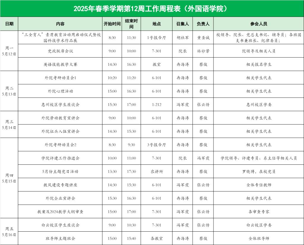 williamhill英国官网2025年春季学期第12周工作周程表