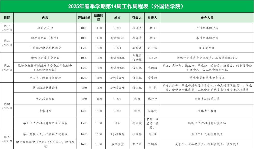 williamhill英国官网2025年春季学期第14周工作周程表