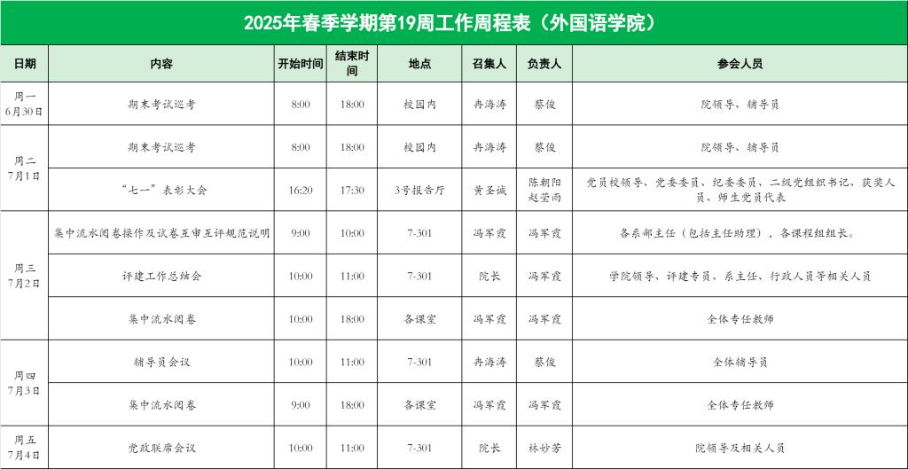 williamhill英国官网2025年春季学期第19周工作周程表