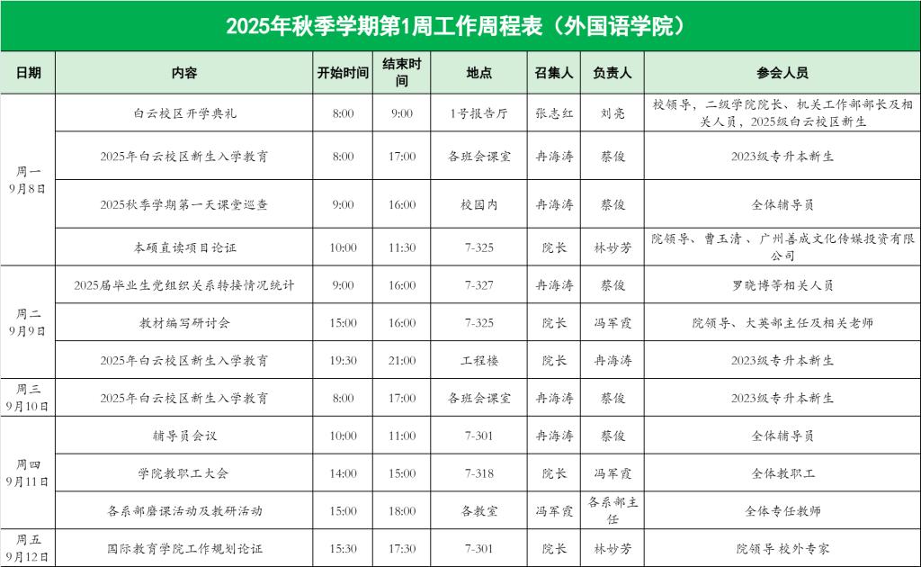 williamhill英国官网2025年秋季学期第1周工作周程表