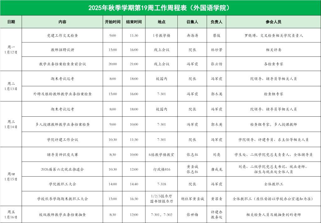 williamhill英国官网2025年秋季学期第19周工作周程表