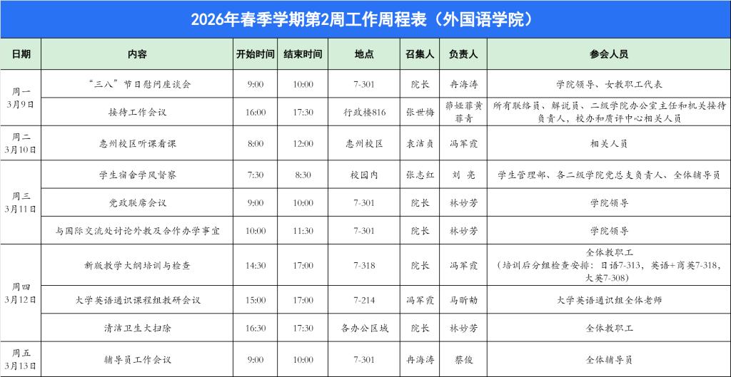 williamhill英国官网2026年春季学期第2周工作周程表
