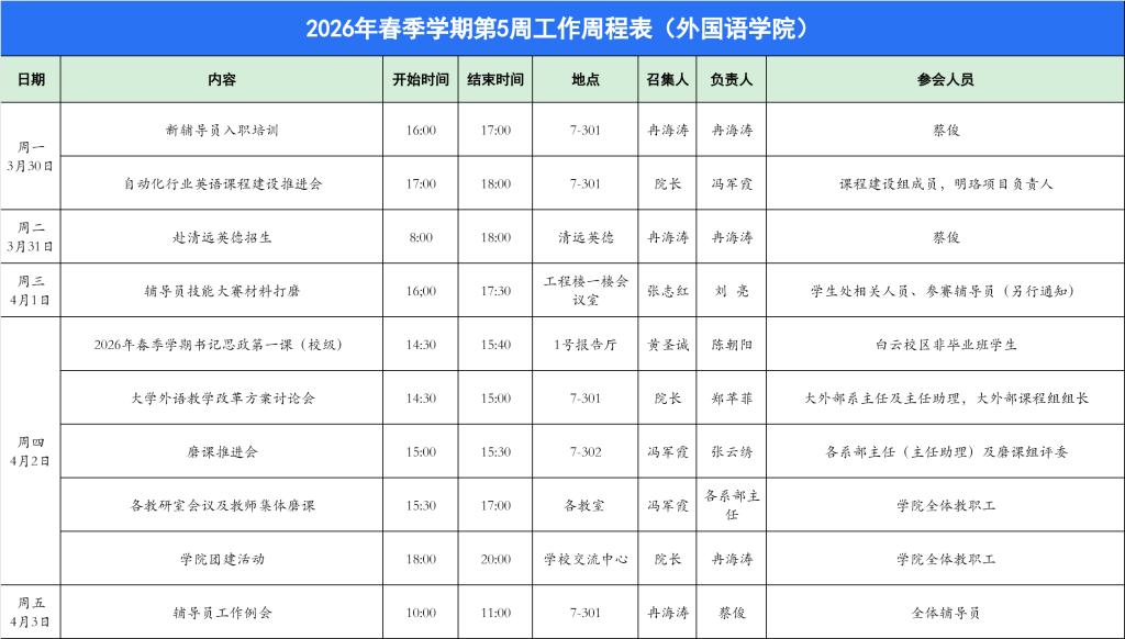 williamhill英国官网2026年春季学期第5周工作周程表