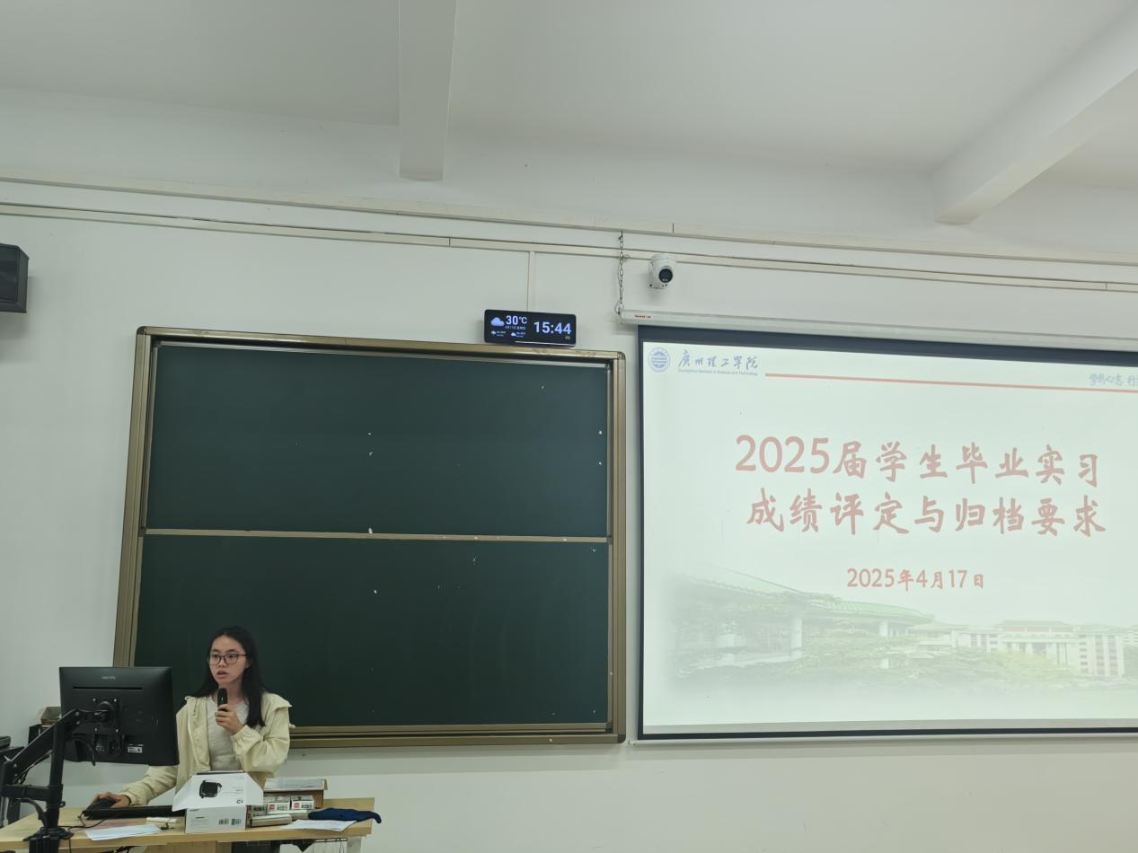 实验员温单婷详细讲解了2025届学生毕业实习成绩的评定标准及归档要求。教师需依据学生实际表现,根据学生的工作态度、专业技能、创新思维等多个维度进行综合评定。成绩归档将严格按照学院的规定程序进行,确保信息准确、及时、完整地反映学生的实习成果。