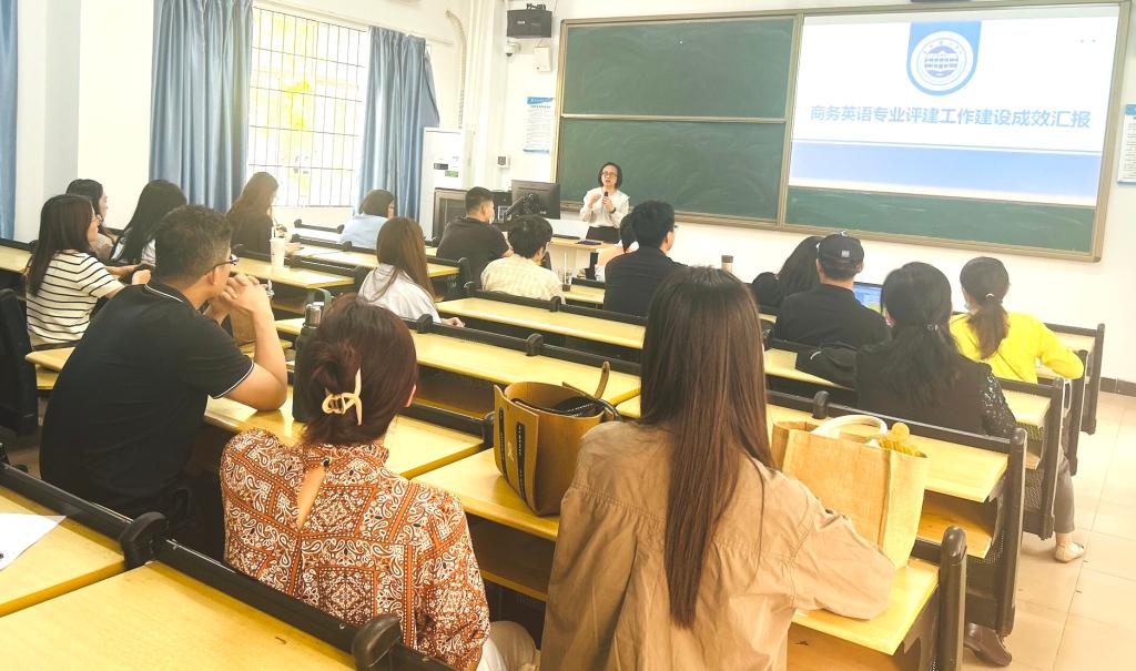 应用英语系潘宏妍主任汇报了商务英语专业的发展情况,强调其目标是培养具有国际视野的应用型人才。2020年招生以来,专业注重跨文化交际、商务实践等能力的培养,2024届毕业生就业率达97.14%。该专业构建了“语言能力+商务素养+实践技能”的三维课程体系,并与大湾区企业合作,培养跨境电商外语人才。