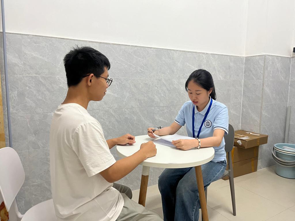 在学生宿舍4栋社区活动室,辅导员蔡伊咏也开展了学生访谈模拟演练。访谈内容涉及学生的学习生活平衡、课外学习资源利用、学习困难与支持等方面。蔡伊咏老师鼓励学生畅所欲言,分享自己在学习和生活中遇到的挑战以及对学院教学工作的建议。学生们纷纷表示,通过这样的访谈,他们感受到了学院对学生的关心和重视,也更加明确了自己在本科教学评估中的责任和义务。