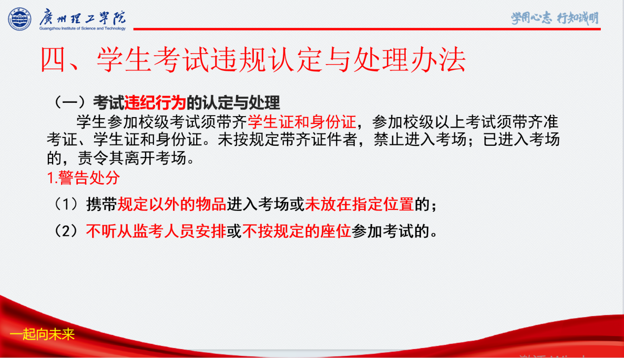 最后,主持人详细解读了《williamhill英国官网学生考试违纪处理办法》,逐一说明考试违纪与作弊行为的认定情形,以及对应的警告、严重警告、记过、留校察看直至开除学籍等处分措施,并着重强调再次违规将加重处罚。字字句句传递出“诚信考试光荣,违纪作弊可耻”的鲜明导向。