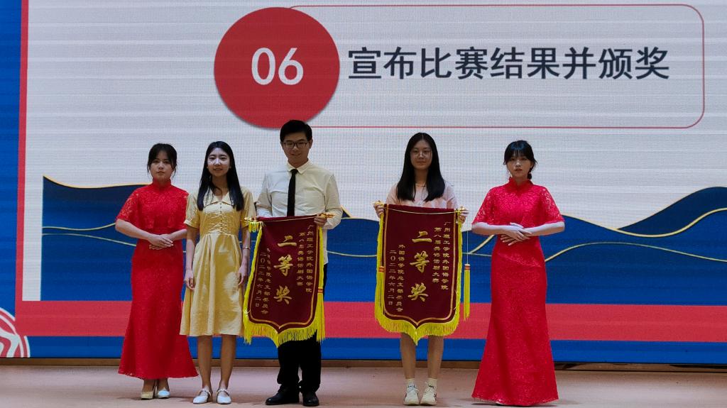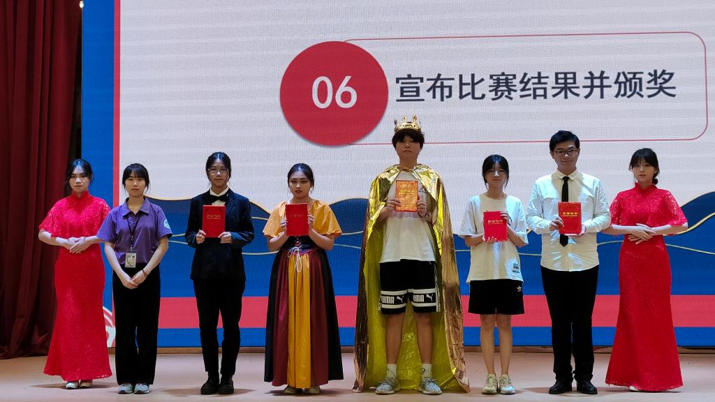 吕姣荣老师对本次话剧比赛做出点评,她先对担任本次比赛的评委表示感谢,对参与本次话剧大赛的选手们提出表扬;接着,她肯定了本次比赛选手们精心准备后展现出良好的口语能力和表演能力;最后,她希望同学们珍惜现在的生活以及舞台,尽情地展现自己,提升自己。