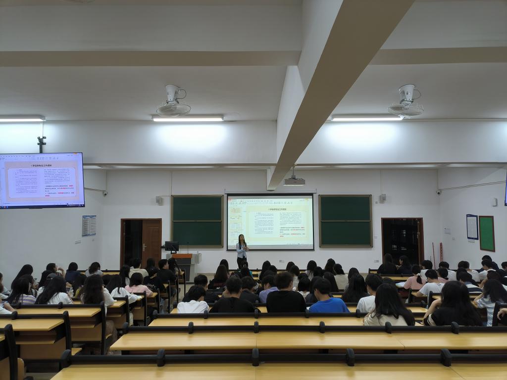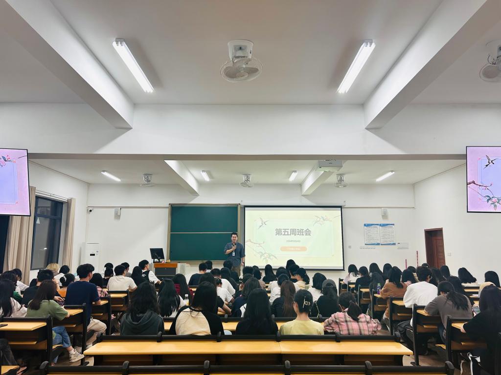会议伊始,班会主持人进行了班会晚点名,落实未参会学生名单、原因及去向,随后从校园文化、校园安全、学生事务、双创教育、宿舍服务以及学院层面多个层面对本周的新规定和有关活动安排进行了讲解。
