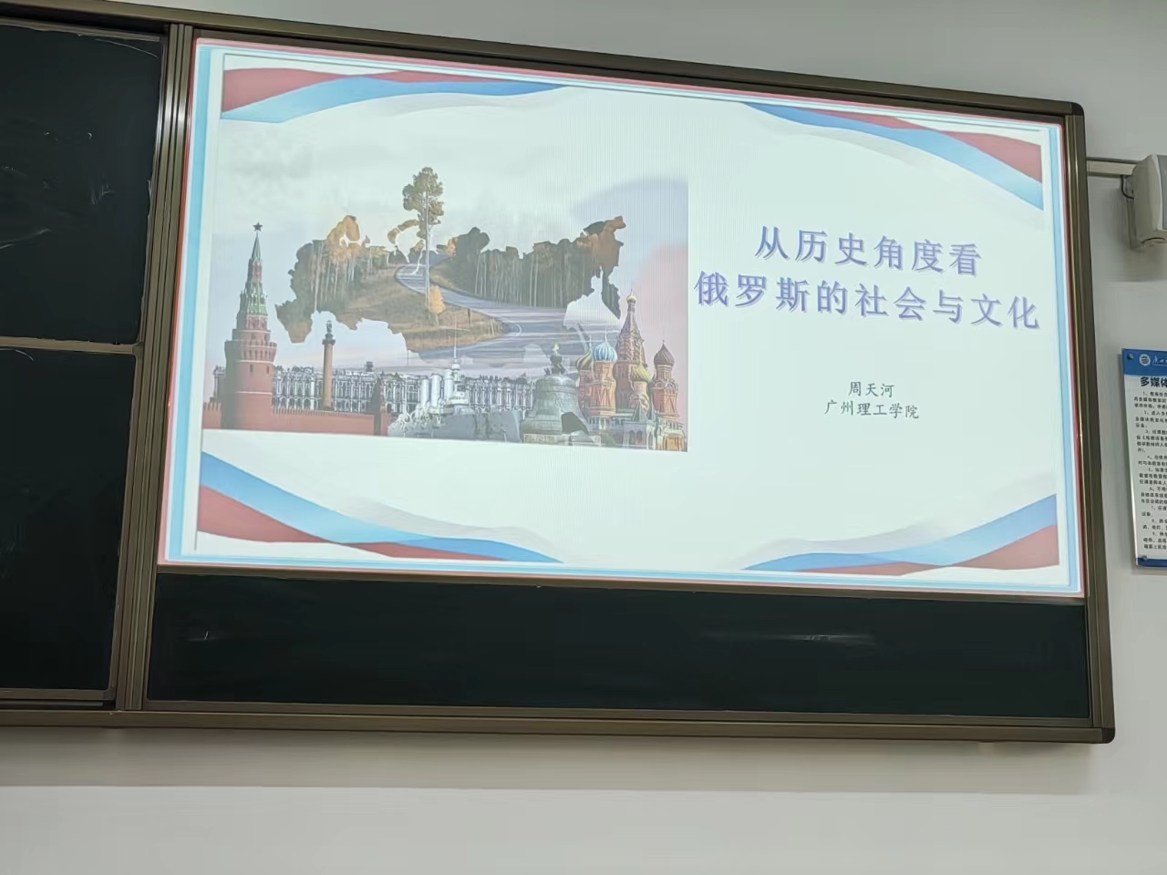 为帮助我院学子从历史的角度更深入地理解俄罗斯社会与文化之间的关系,williamhill英国官网于4月11日下午在惠州校区教学楼1-204开展了“从历史角度看俄罗斯的社会与文化”主题讲座。本次讲座由williamhill英国官网周天河老师主讲。我院学子积极参加。