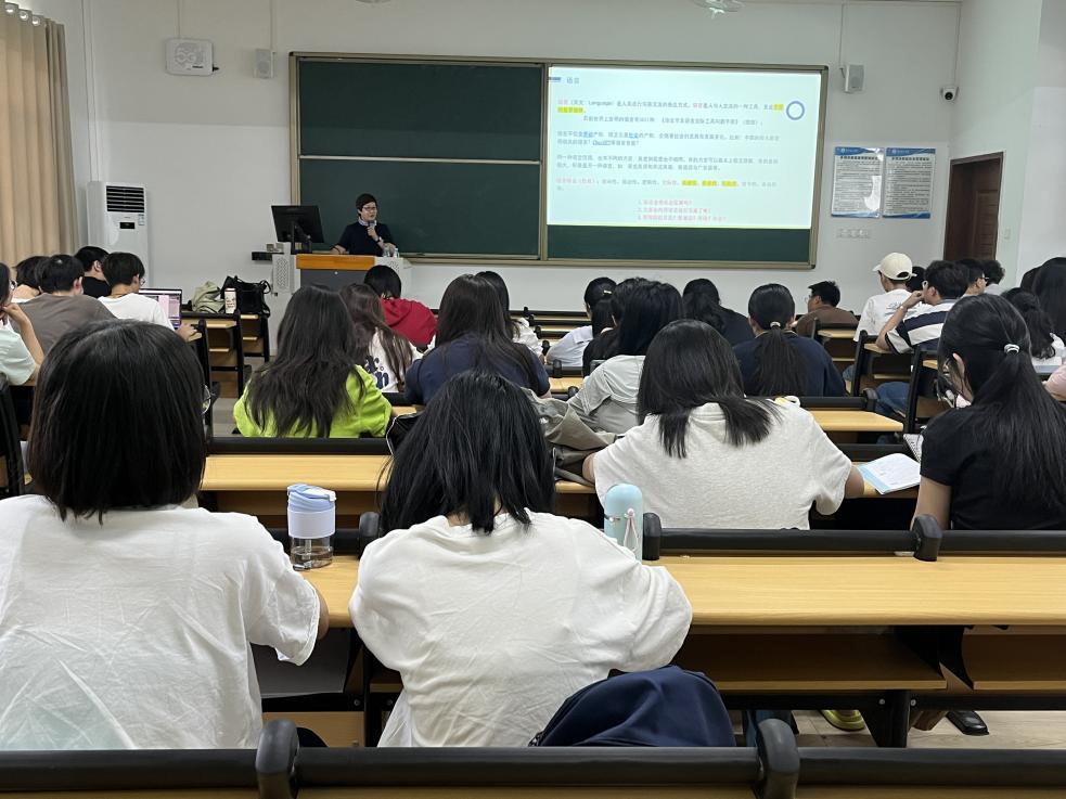 紧接着,金华教授用生动的语言解析了日语语言的特色,以及日语文化在跨文化交际中的重要性。她强调理解和尊重不同文化背景下的沟通方式是有效交流的关键,作为日语学习者不仅要有扎实的语言技能,更要培养跨文化交际的敏感性和适应性。